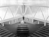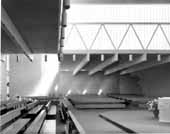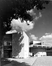 St Margaret's Church, Twickenham This is one of our "historic" projects: it dates from 1967 and is now listed Grade II as an historic building. The building straddles a narrow site, and the interior is flooded with daylight from the large translucent cast glass clerestory windows. The original concrete blockwork did not weather well, but the church has recently been cleaned and is looking now in fine spirit.